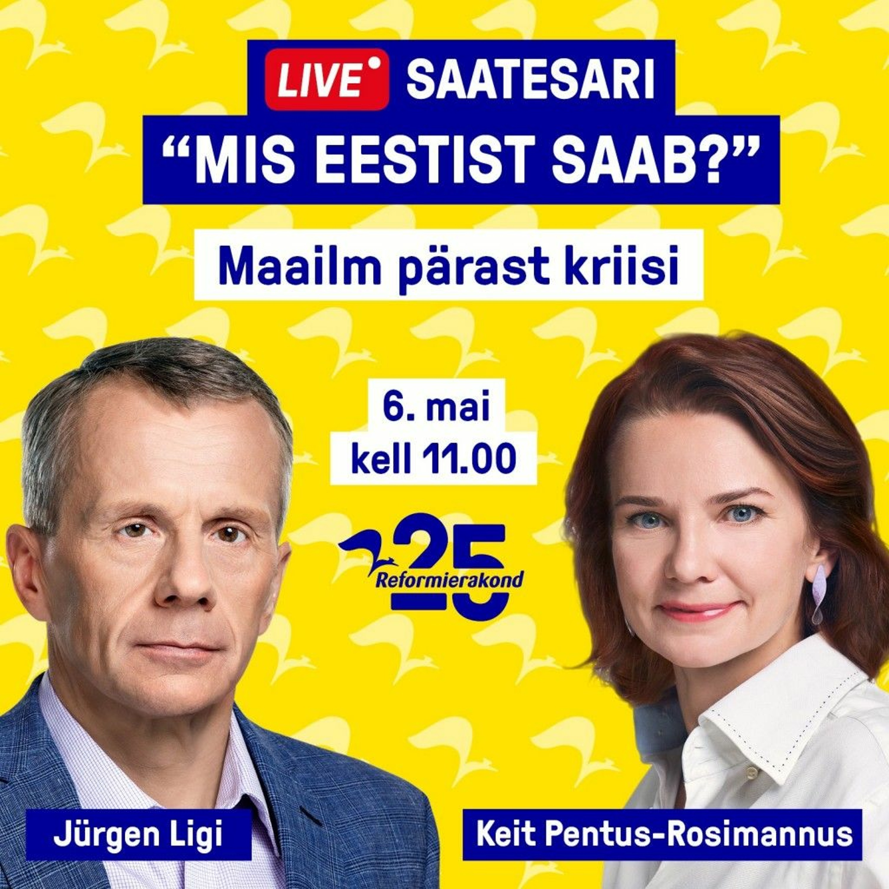 Reformierakonna uus saatesari "Mis Eestist saab?" on täie hooga käima läinud. Milline on maailm ja Eesti pärast kriisi? Kolmandas saates sarjast "Mis Eestist saab?" arutavad Jürgen Ligi ja Keit Pentus-Rosimannus otse-eetris selle üle, kuidas elu pärast kriisi maailmas ja Eestis edasi läheb.